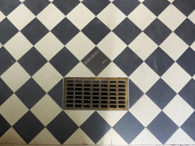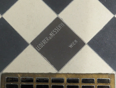 As I suspected, few doors were open or unlocked to Vienna’s residential buildings. Unlike Lviv, the vast majority of doors are in good condition and kept locked, usually with a key and not code. Therefore, I didn’t have the opportunity to see many entranceways. However, I lucked out and did find a few beautiful corridors and stairwells. But I only found one tile with a manufacturer’s mark.