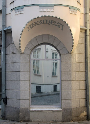 Two restored hand-painted signs from when this building used to house a pharmacy and a gallery. Now it is a consulate of the Russian Embassy.