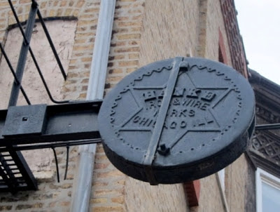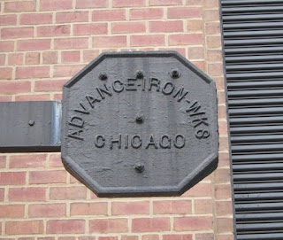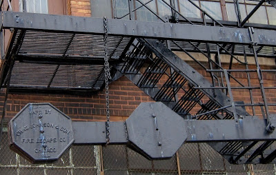 The first external iron fire escape I took note of was in my suburb because the manufacturer’s stamp on the counterweight caught my eye. Then I started noticing them all over Chicago. Many of them have a circular or octagonal decorative counterweight stamped with the manufacturer’s name, while some don’t have any inscriptions at all.