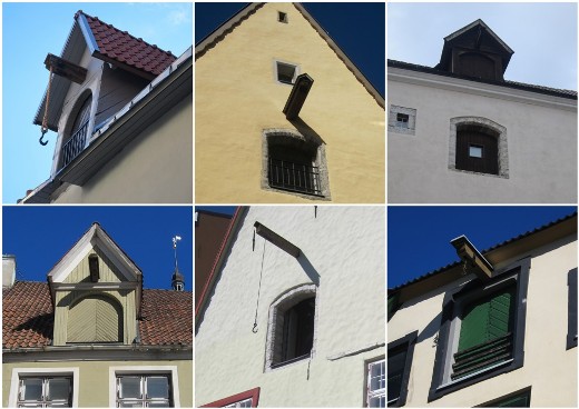 The merchandise was hoisted to the storage areas with ropes, which were wound by winches. The storage levels had special portals for the goods to enter. Wooden beams were attached to the buildings above the openings to guide the rope.
