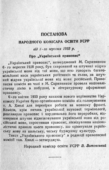 - Введення русифікованого правопису 1933 року в Радянській Україні