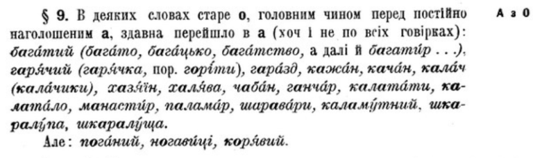 - Використання а (а не о) в словах, таких як манастир, шаравари.
