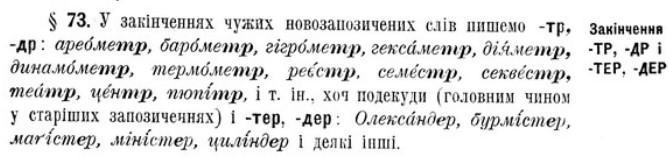 - Закінчення –тер (а не –тр) у таких словах, як міністер, Олександер.